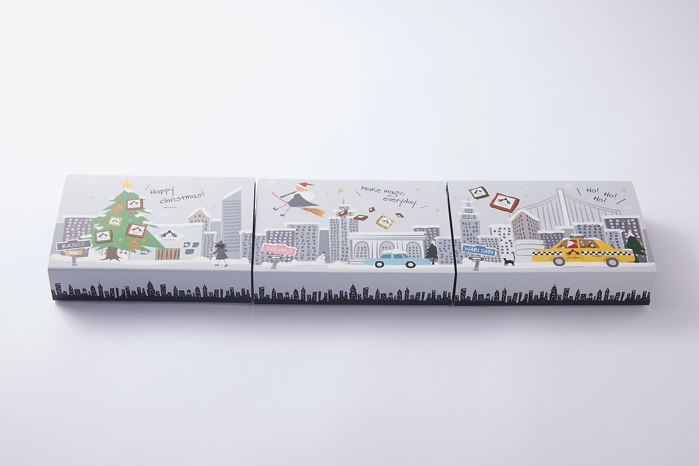 冬のNYの街並みにクリスマス限定ブラウニーが顔を出す華やかなセット。