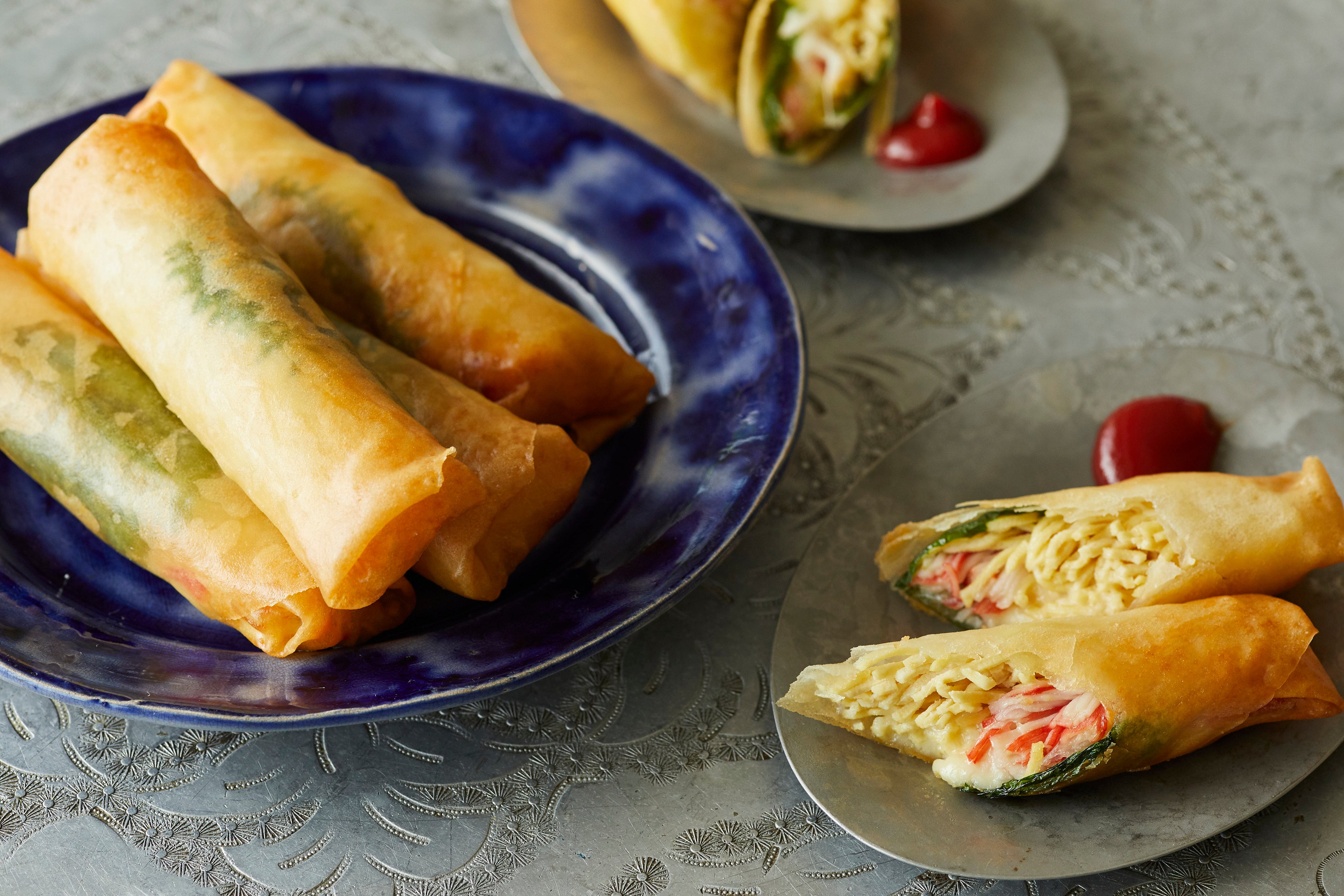 春雨の代わりに豆腐干を入れることで、より食べ応えのある春巻きが完成します。とろ~りチーズとかにかまの組み合わせでおつまみとしてもお召し上がりいただけます。