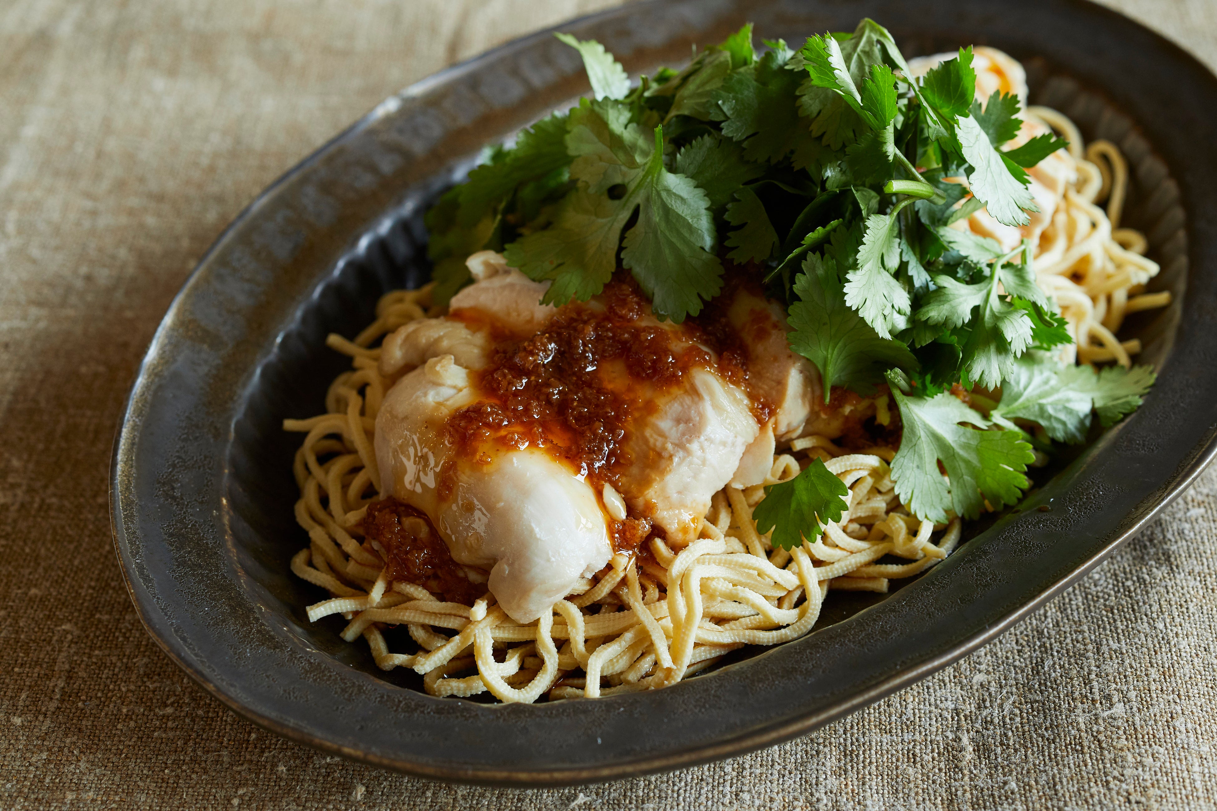 蒸し鶏と豆腐干を組み合わせは、ヘルシーで高たんぱく質、リセットレシピにぴったりです。しょうがやにんにく、黒酢、花山椒を使用したピリ辛の香味だれを合わせることで、食欲をそそるごちそうになります。