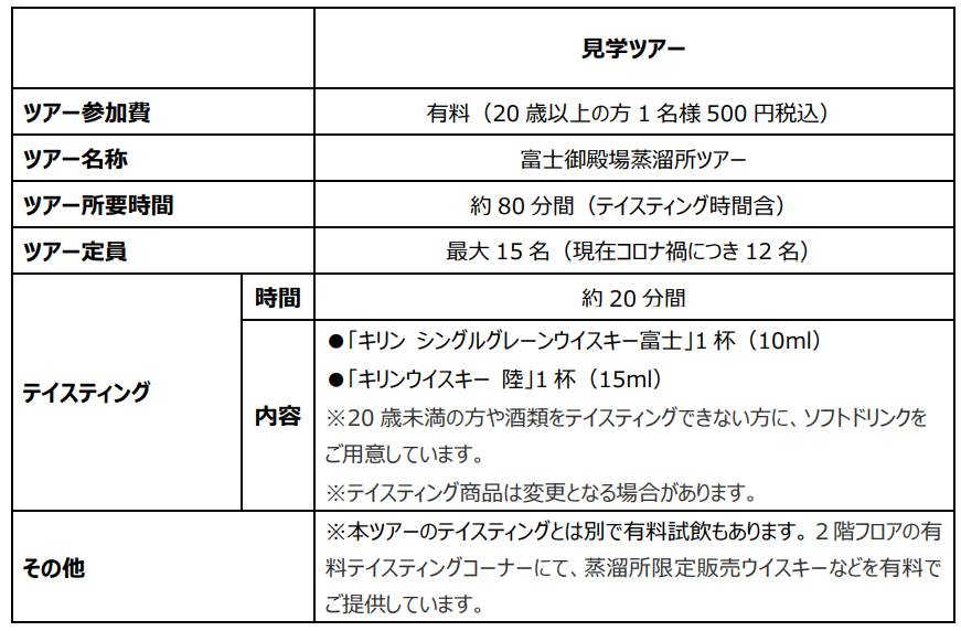 補足資料:「蒸溜所見学 富士御殿場蒸溜所ツアー」 概要