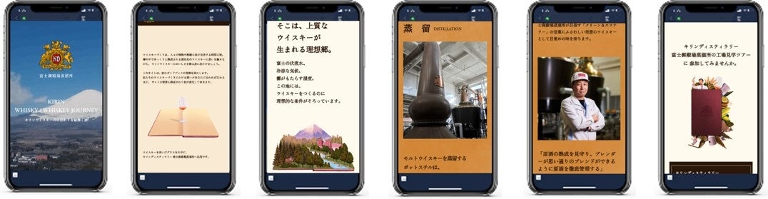 3.内容 スマートフォンやパソコンからWEB上で縦スクロールしていく簡単な操作で楽しめる仕様となります。富士御殿場蒸溜所のキリンのウイスキーのこだわりを紐解く旅へと誘うガイドブックを読み進めていくストーリーで展開するコンテンツとなっています。