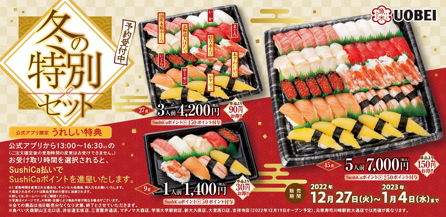 年末年始はぜひ、魚べいの贅沢ネタを詰め合わせた「冬の特別セット」とともにお過ごしください。