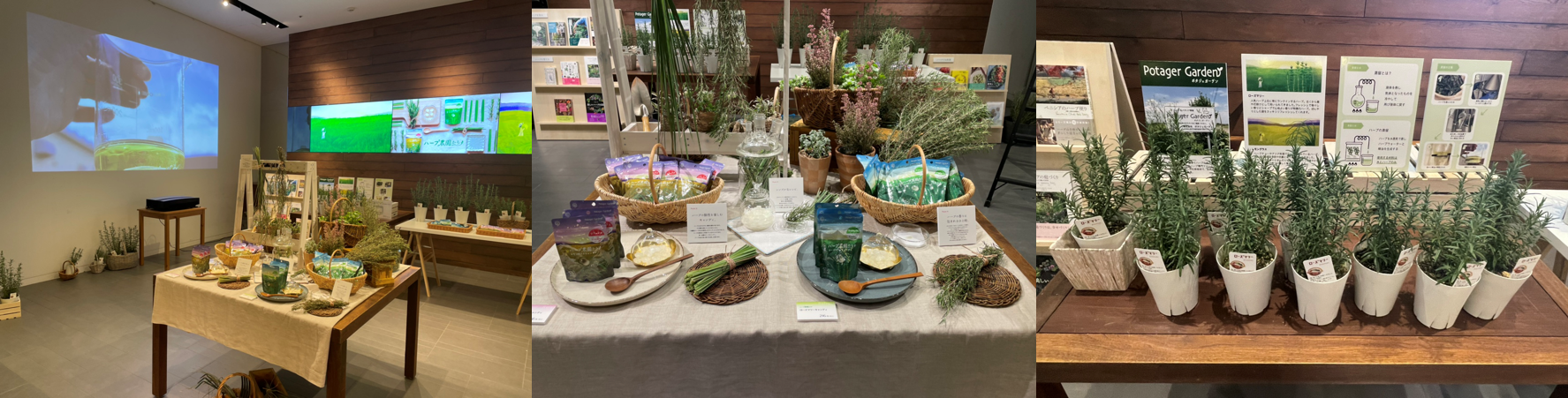 トークイベントを開催した二子玉川 蔦屋家電では12 月8日(金)~10日(土)の3日間、「ハーブ農園から」のPOP UP SHOPを出店。「ハーブ農園から」と、原材料で使用している老舗ハーブ農園「ポタジェガーデン」のハーブの販売を行いました。