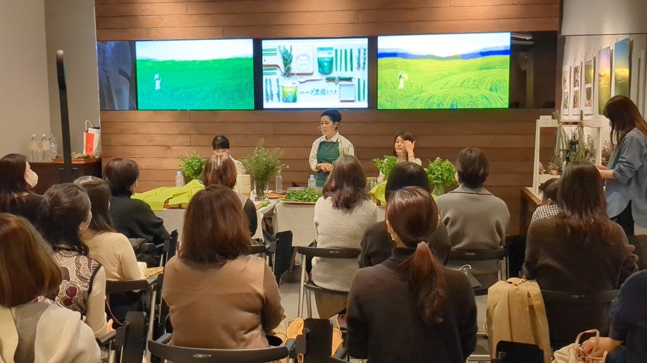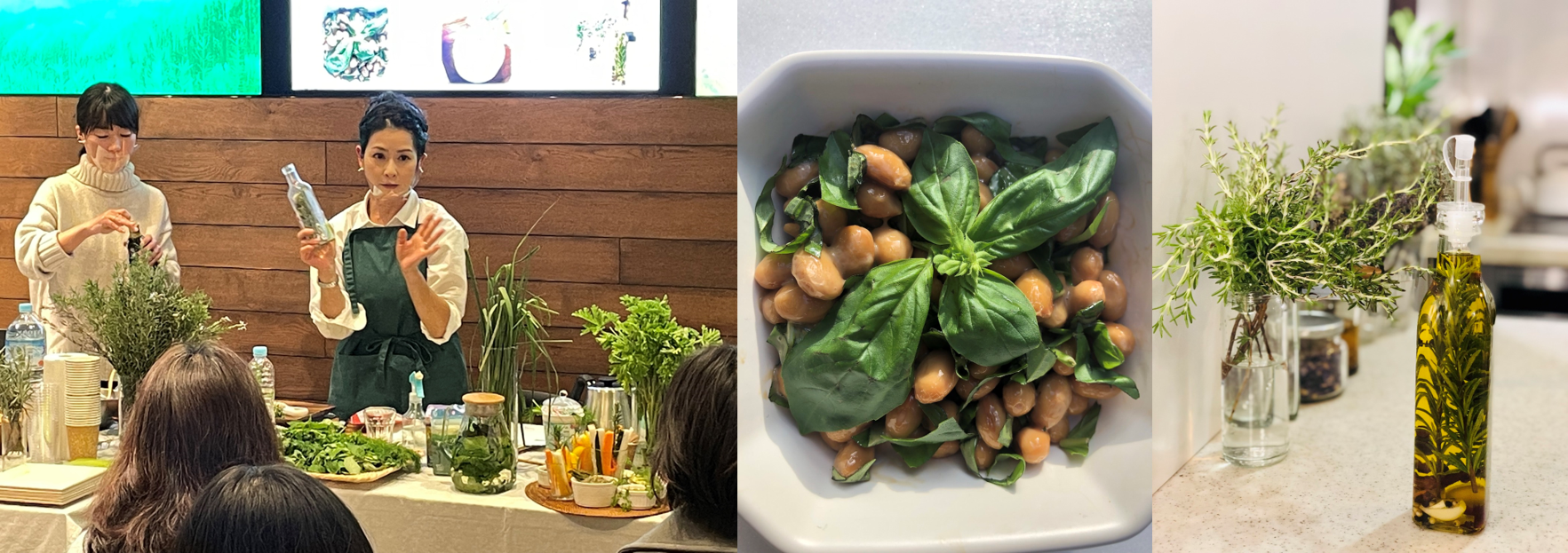 ハーブの魅力やパワー、生活への取り入れ方、簡単なハーブ料理レシピのデモンストレーションを行い、