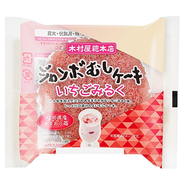 いちごピューレにれん乳を加えてコクのあるまろやかないちごみるく味に仕上げた、しっとり口溶けのよいむしケーキです。