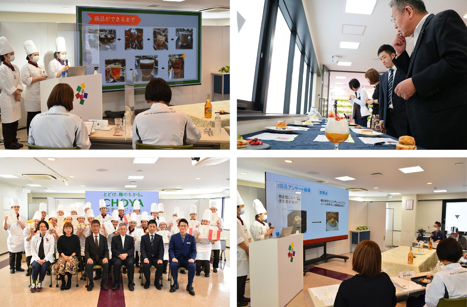 チョーヤ梅酒株式会社 (本社:大阪府羽曳野市、社長:金銅重弘、以下チョーヤ) は、大阪キャリナリー製菓調理専門学校 (所在地:大阪市西区、学校長:内山加代子、以下大阪キャリナリー) と協力し、Z世代の新しい発想で梅産業を盛り上げ、日本の梅文化を次世代に紡ぐ事を目的とし、2022年4月に日本の梅に特化したカリキュラムを大阪キャリナリーの製菓・製パン科 パティシエ & ショコラティエコース内に1年度限定で開設。大阪キャリナリーの生徒27名が7つのグループに分かれ、「梅の半生スイーツ部門」、「梅の焼き菓子部門」、「梅ドリンク部門」の3部門においてメニュー開発に取り組みました。