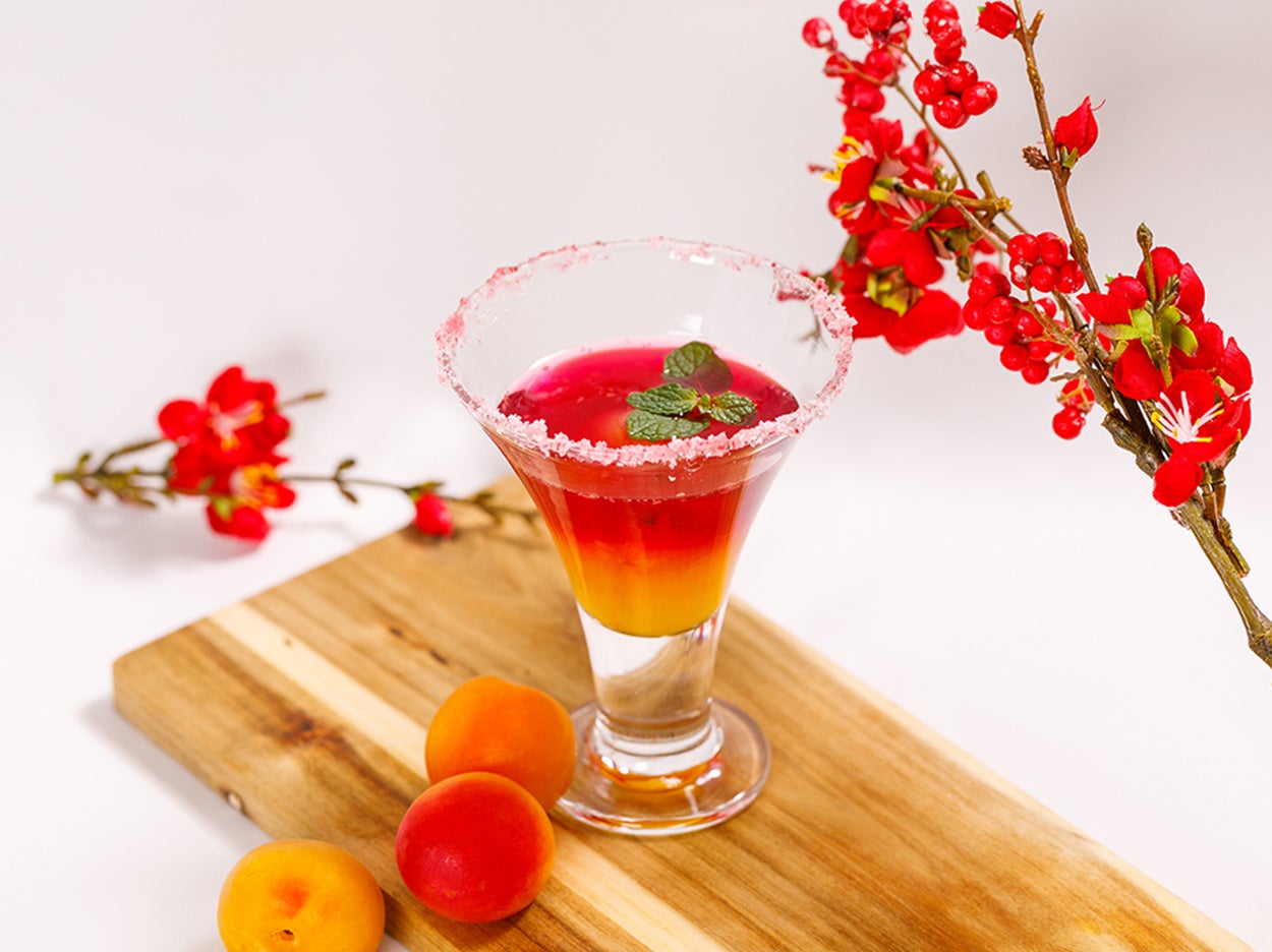 グラスの縁に甘みのあるドライ梅干を添えたドリンク。
