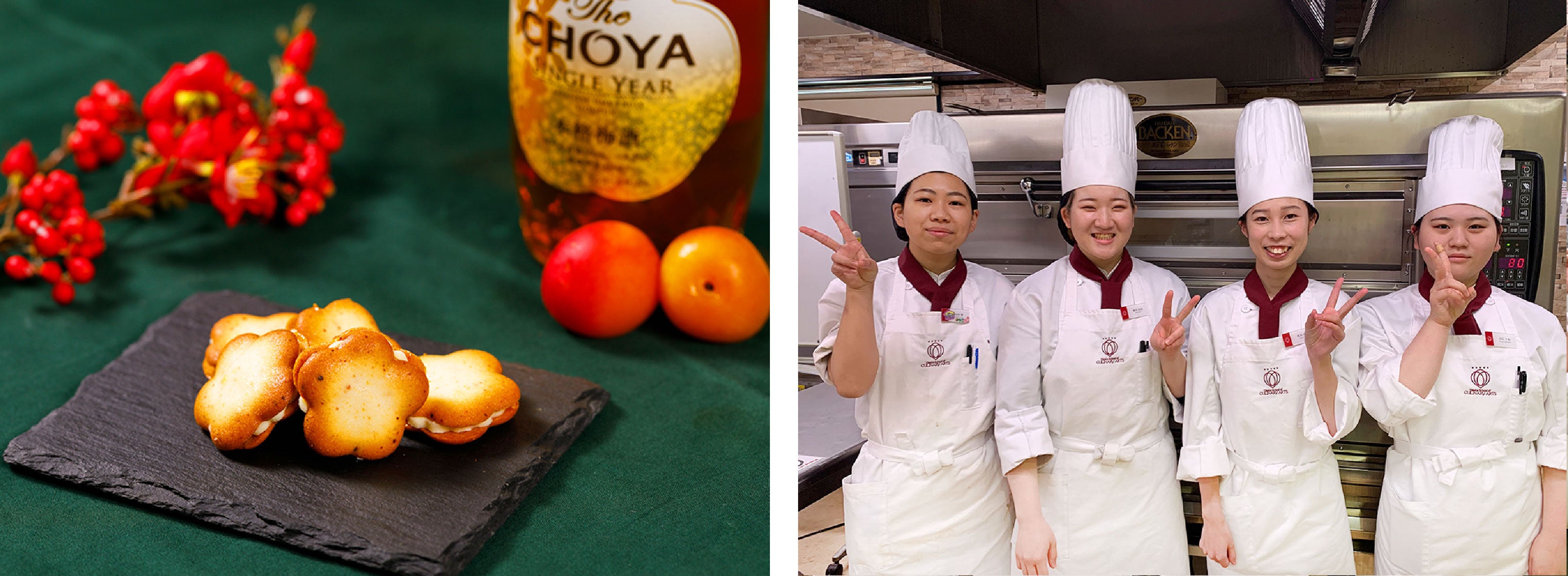 チョーヤ梅酒株式会社 (本社:大阪府羽曳野市、社長:金銅重弘、以下チョーヤ) は、大阪キャリナリー製菓調理専門学校 (所在地:大阪市西区、学校長:内山加代子、以下大阪キャリナリー) と協力し、Z世代の新しい発想で梅産業を盛り上げ、日本の梅文化を次世代に紡ぐ事を目的とし、2022年4月に日本の梅に特化したカリキュラムを大阪キャリナリーの製菓・製パン科 パティシエ & ショコラティエコース内に1年度限定で開設。大阪キャリナリーの生徒27名が7つのグループに分かれ、「梅の半生スイーツ部門」、「梅の焼き菓子部門」、「梅ドリンク部門」の3部門においてメニュー開発に取り組みました。