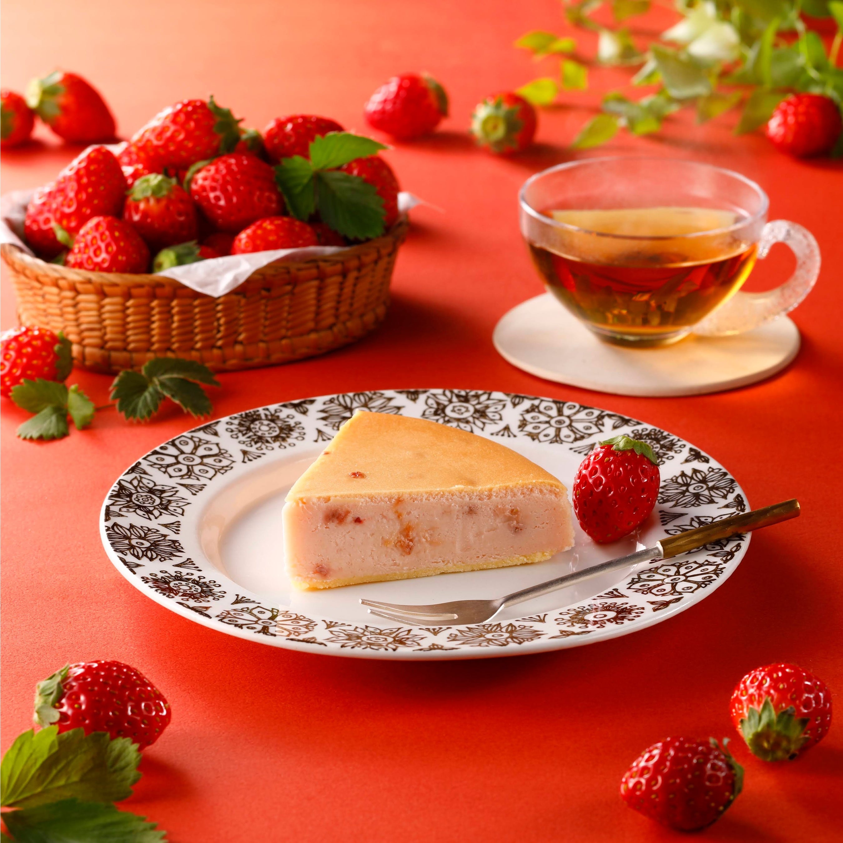 2020年の販売当初から人気を博している『御用邸ストロベリーチーズケーキ』が再登場します。数種類のチーズをブレンドした生地に、栃木県産の代表・とちおとめを100%使用して仕上げた苺餡を練り込むことで、どこを食べても苺の甘酸っぱい香りが広がります。また、苺のつぶつぶ感を楽しんでいただこうと、細かく刻まれたフリーズドライの苺も混ぜることで、食べたときの食感の変化もお楽しみいただけます。チーズのミルク感が苺と合わさることでミルキー感が増し、まるでいちごミルクのようなまろやかな味わいもお楽しみいただけます。