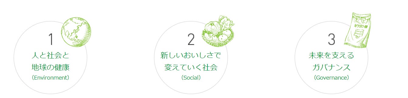 地球環境に貢献し、グローバル化をはかり、新しい食の未来をめざし、おいしさと健康を一致させた商品を世界に提供していきたいと考えています。100年先も「やがて、いのちに変わるもの。」を育む変革と挑戦の企業であり続けたいと考えています。