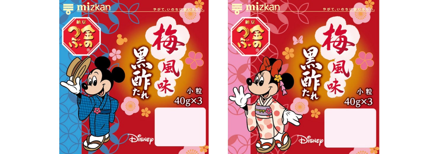 前回ご好評いただいた、ディズニーパッケージ企画の第2弾として、「金のつぶ 押すだけプシュッ!と 梅風味黒酢たれ」の新デザインパッケージを発売いたします。「梅風味黒酢たれ」は、独自の発酵方法と納豆菌で気になるにおいを抑えた納豆なので、納豆が苦手な方でも食べやすく、からだを整える日々の習慣として取り入れやすい商品です。