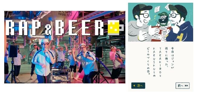 今回「HOPPIN’ GARAGE」公式サイトで公開するデジタルストーリーブックでは、「HOPPIN’ GARAGE RAP & BEER」の主人公である上鈴木兄弟の人生で大切にしている想いや商品ができるまでの過程を描いています。同商品の世界観をより一層お楽しみいただけるコンテンツになっていますので、商品とあわせてお楽しみください。