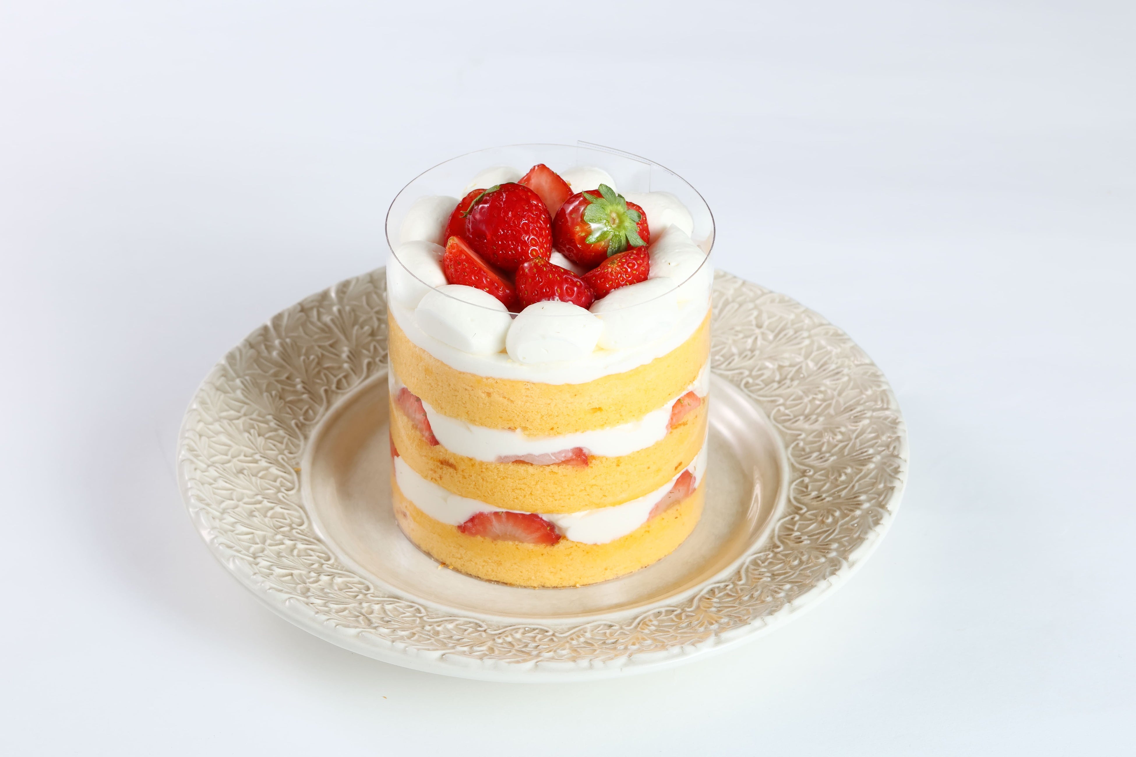 粉量を極限まで少なくし、黄身を贅沢に使用。卵本来の風味や甘みを存分に引き立てたスポンジで作る新しいデコレーションケーキ。とちおとめを使用しています。