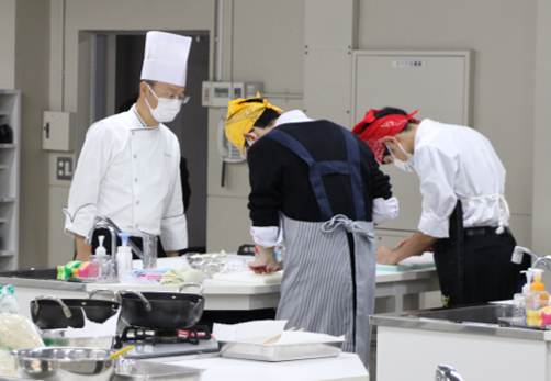 本講座は、第 3 学年の選択科目「家庭演習」における調理実習の一部を当社の社立調理学校、レストラン、ホテルなどのスタッフが担当し、和食の基本や食を通した健康づくりなどのテーマで実施してまいりました。2020年以降は、新型コロナウイルスの感染防止に配慮し、授業内容を調整しながら講座を継続、今年度も昨年同様、グループ会社の株式会社asken(本社:東京都新宿区、代表取締役社長 中島洋)が開発運営する食事管理アプリ「あすけん」を活用した、体づくりや健康管理への意識を高めるための講義および実習と、感染拡大防止に配慮した方法による調理実習を実施しました。調理実習では、担当したシェフより、4クラス68名の生徒に調理の技術とともに、食の大切さや食事を作ることへの思いを直接伝えることで、次世代のリーダーの育成を進める慶應義塾高等学校の教育の一助となることを目指しました。
