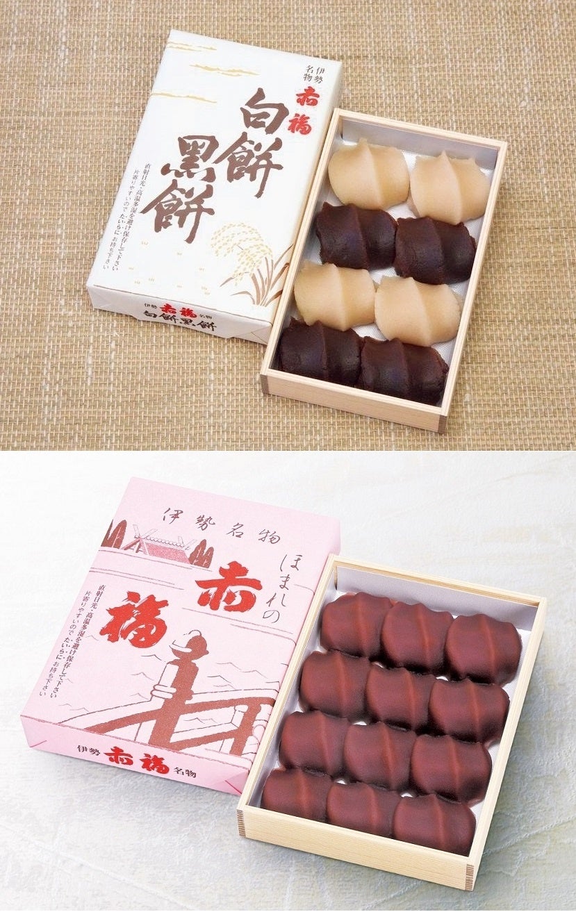 【三重】赤福/[上]白餅黑餅(8個入)1,000円 新商品 [下]赤福餅(12個入)1,200円 <通期>