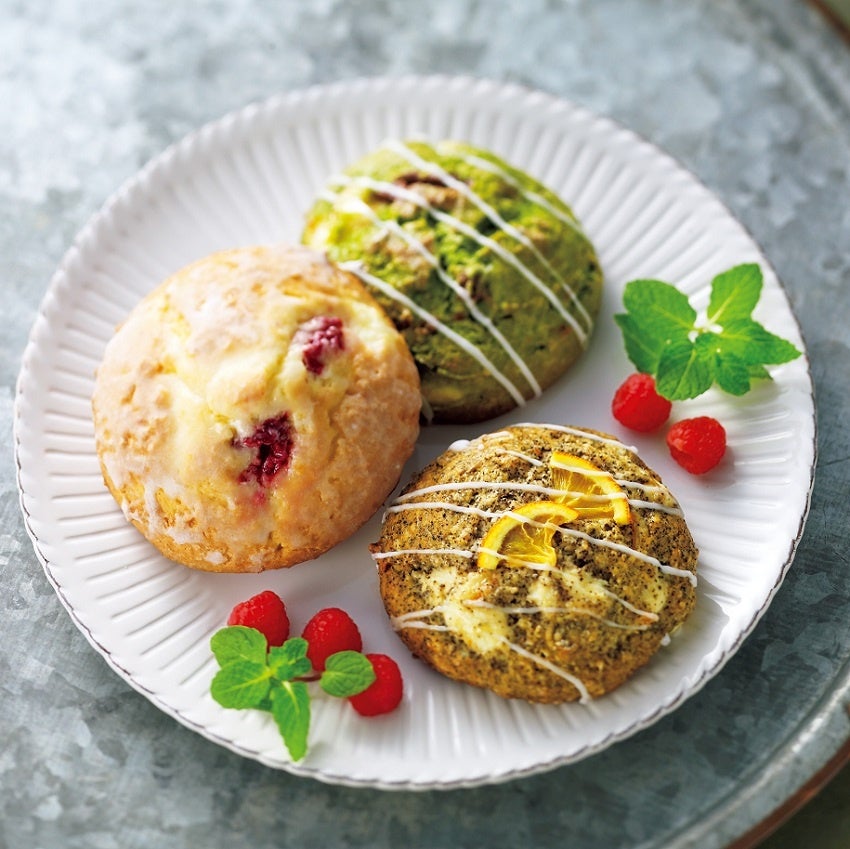 たっぷりのクリームチーズと紅茶や果実を練りこみ、しっとり食感にやきあげました。