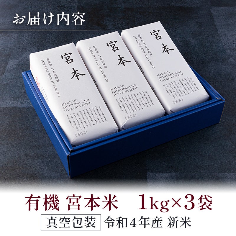 ◎【ふるさと納税】有機 宮本米(1kg×3袋)令和4年産 新米 真空包装 有機JAS認証取得 ※2023年1月までの限定予約