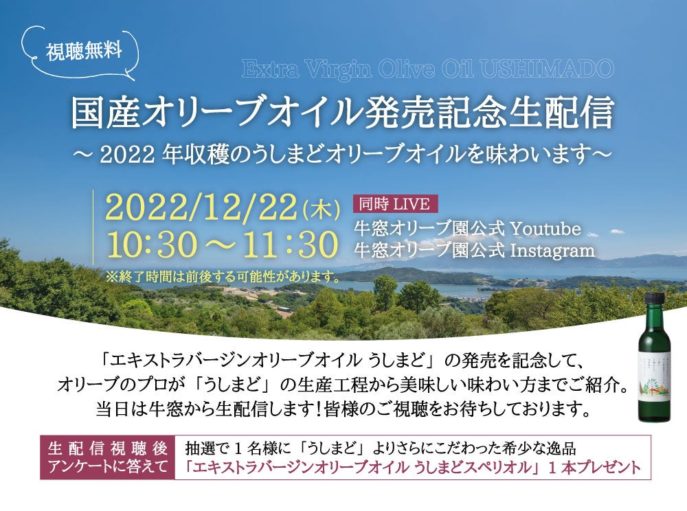 年末年始、ワンランク上の贅沢食材が食卓に並ぶシーズンです。12月21日、日本オリーブ株式会社(所在地:岡山県牛窓町、代表取締役:服部芳郎)は、食材をドレッシングすることでさらに美味しくなる、秋に収穫したばかりの搾りたての「エキストラバージンオリーブオイルうしまど」を数量限定で発売します。