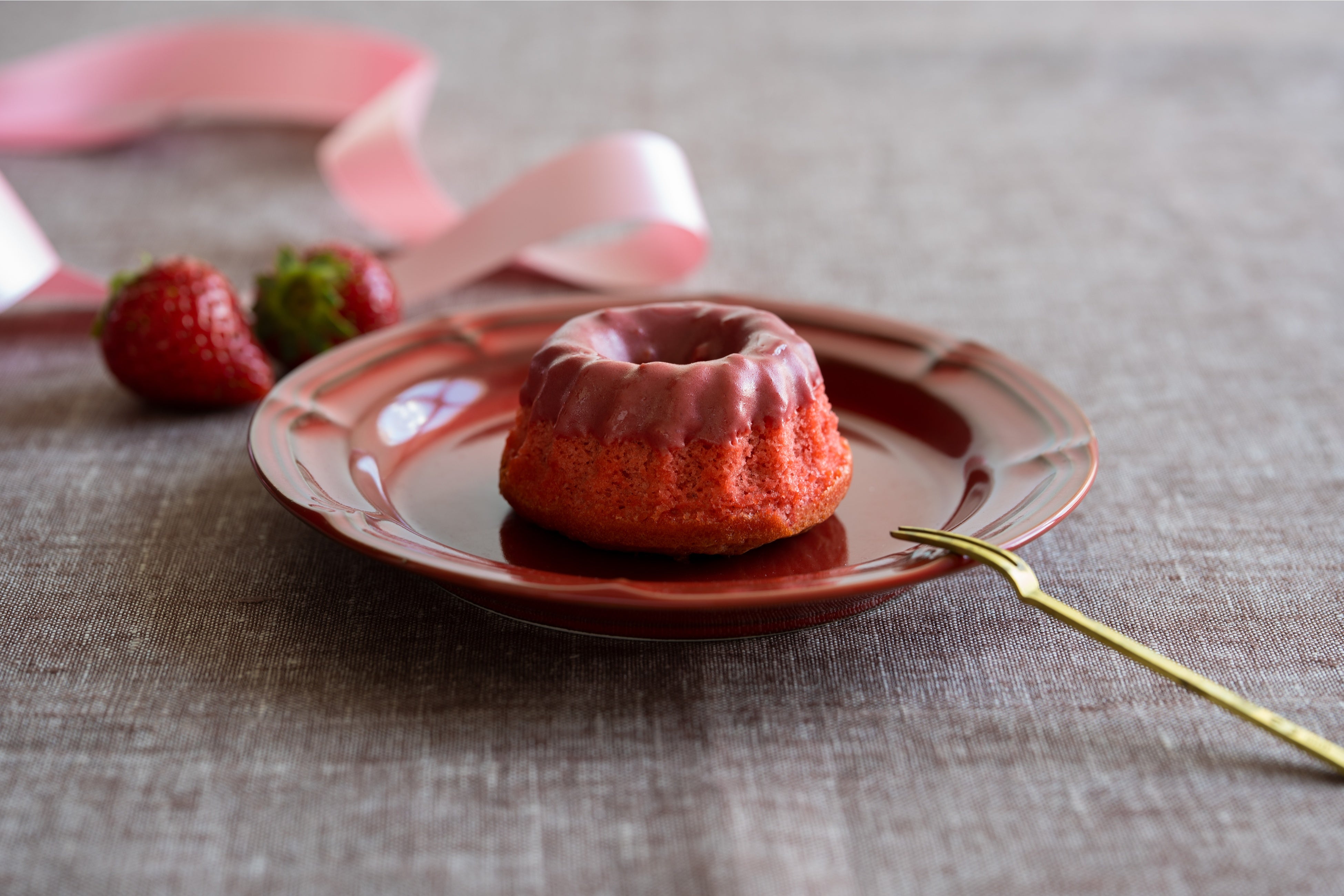 「もちっとしっとり」としたシフォンケーキの生地に苺のチョコと苺果汁を練り込むことで、一