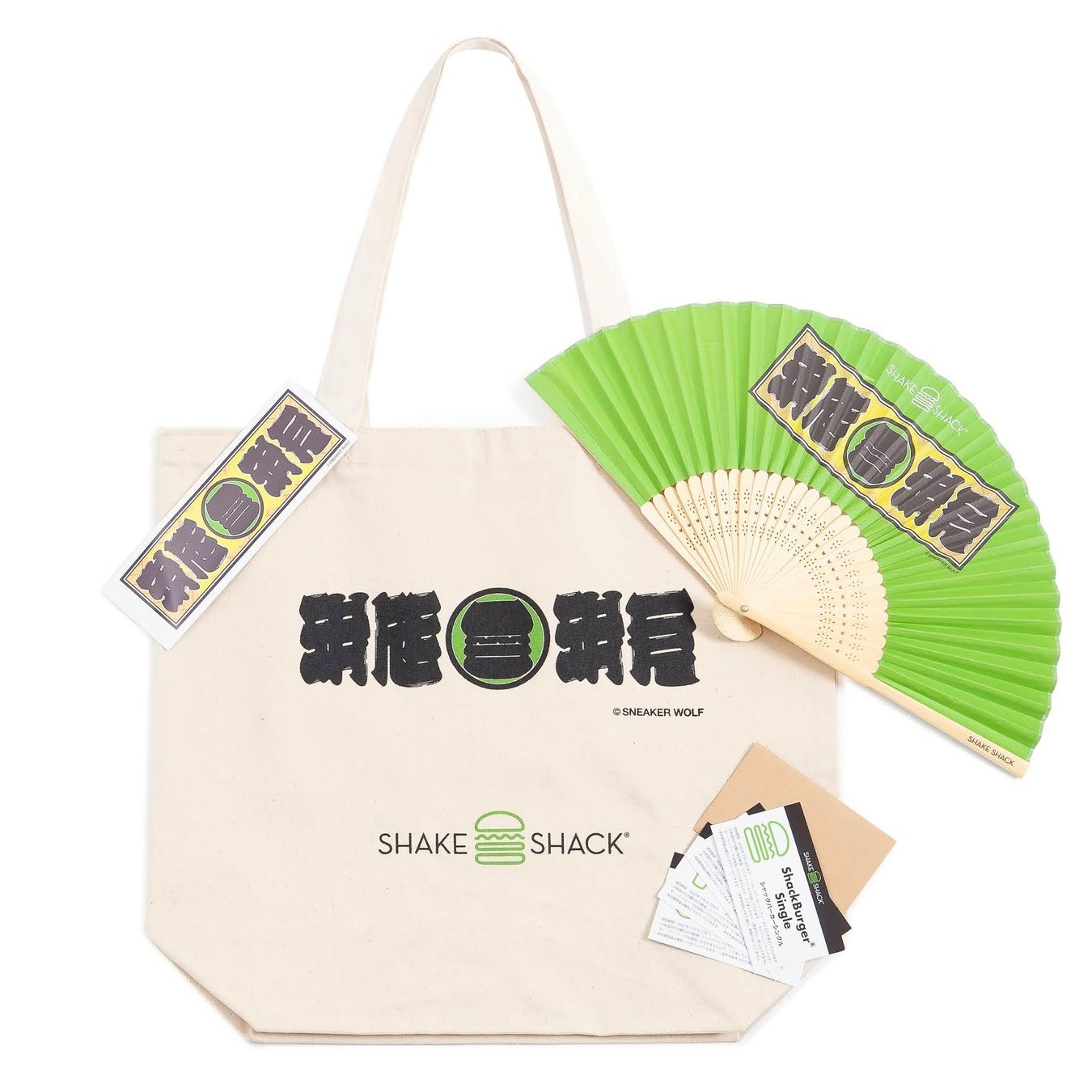 - 内容:SNEAKERWOLFコラボトートバッグ・扇子・ステッカー、ミールチケット4種(シャックバーガーシングル、チキンシャック、フライスモール、オリジナルレモネード)