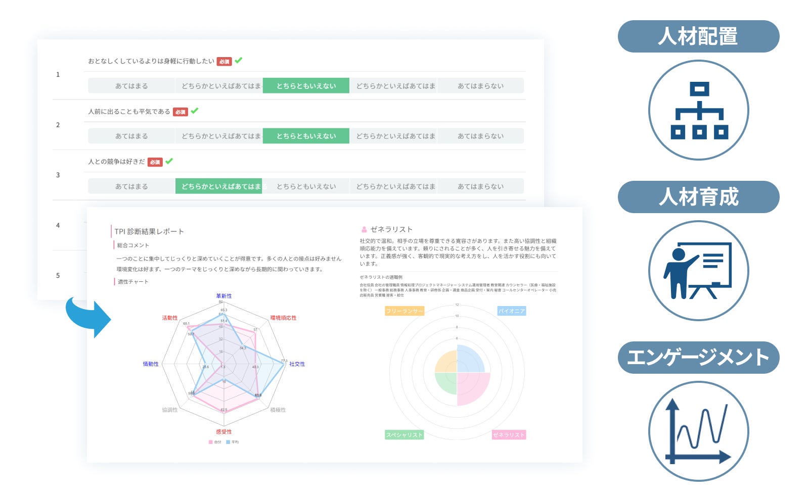 ■ エンゲージメントサーベイ、TPI適性検査の利用イメージ