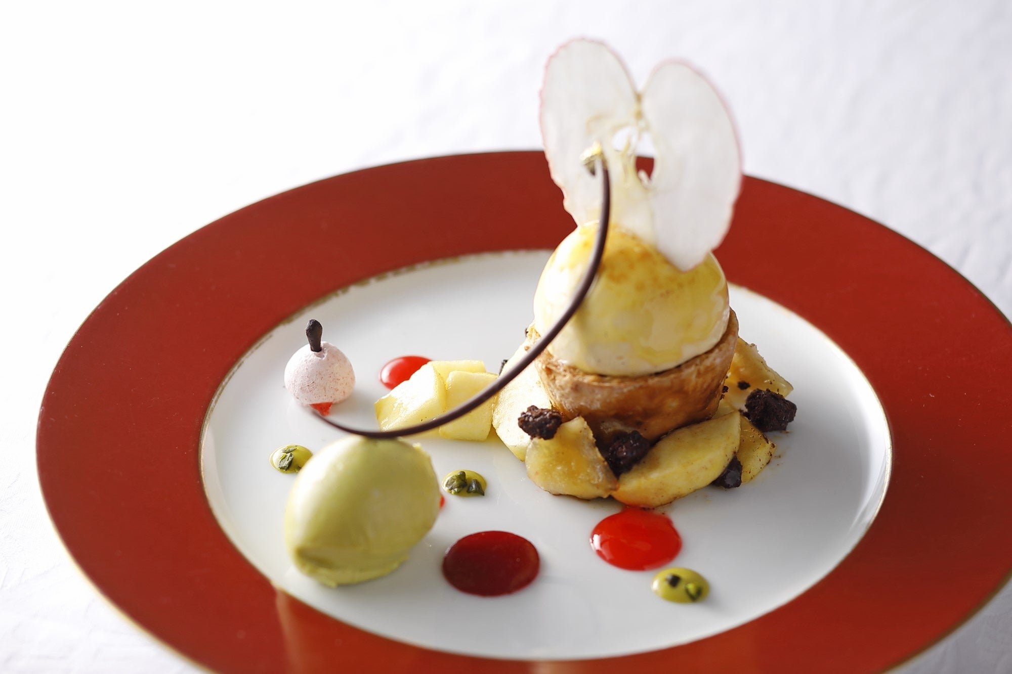 - ❖『りんごのピュイダムール ピスタチオアイスクリームを添えて』2,400円 (税込)(コーヒーまたは紅茶またはハーブティー/カップサービス)