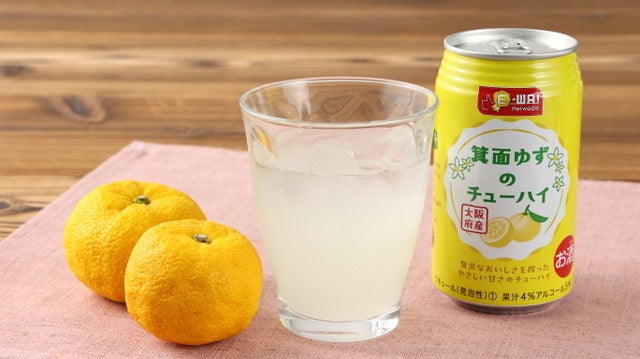 E-WA! 箕面ゆずのチューハイは、大阪府箕面市で栽培されている「箕面ゆず」の果汁をストレートのままたっぷり4%使用し、華やかな香りがしっかり活きたプレミアムチューハイです。