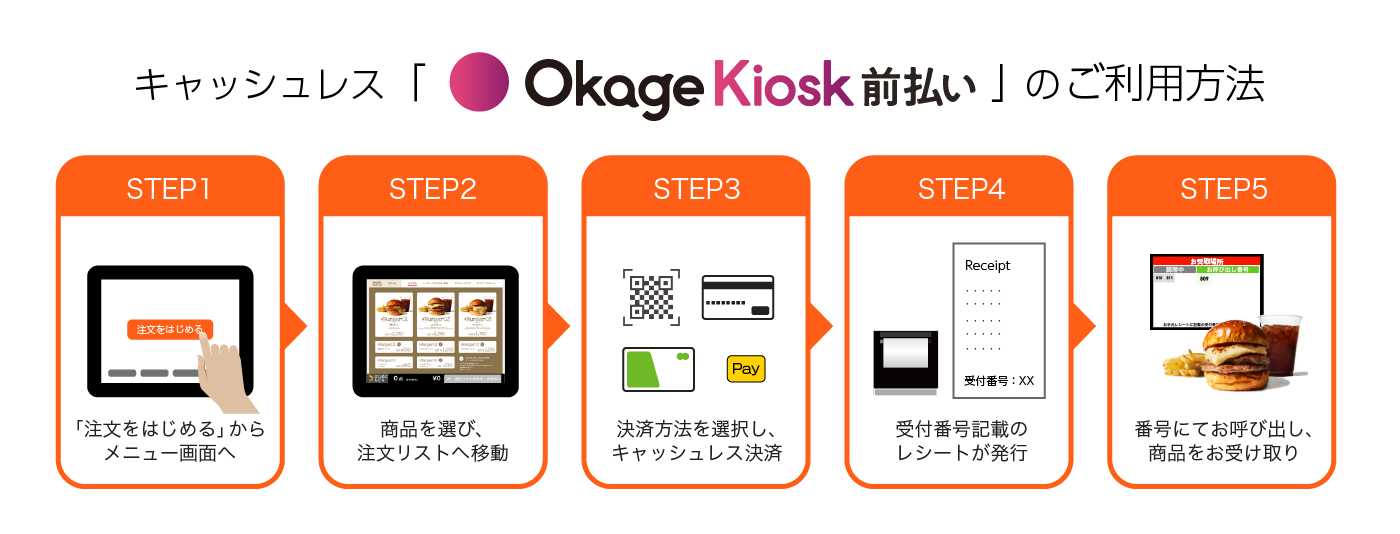 - 店外モバイルオーダー(Okage Go店外版)とOkage Kiosk前払いはOkage DX Platform上で統合管理でき、効率的に運用できます