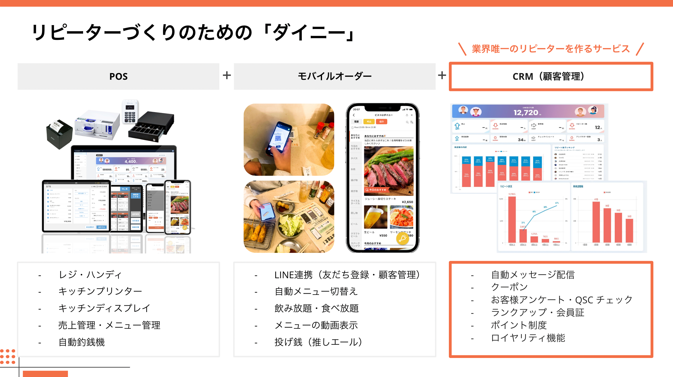 ■業務効率化と人件費低減に加え、飲食業界唯一*のリピーター作りまで提供するモバイルオーダー