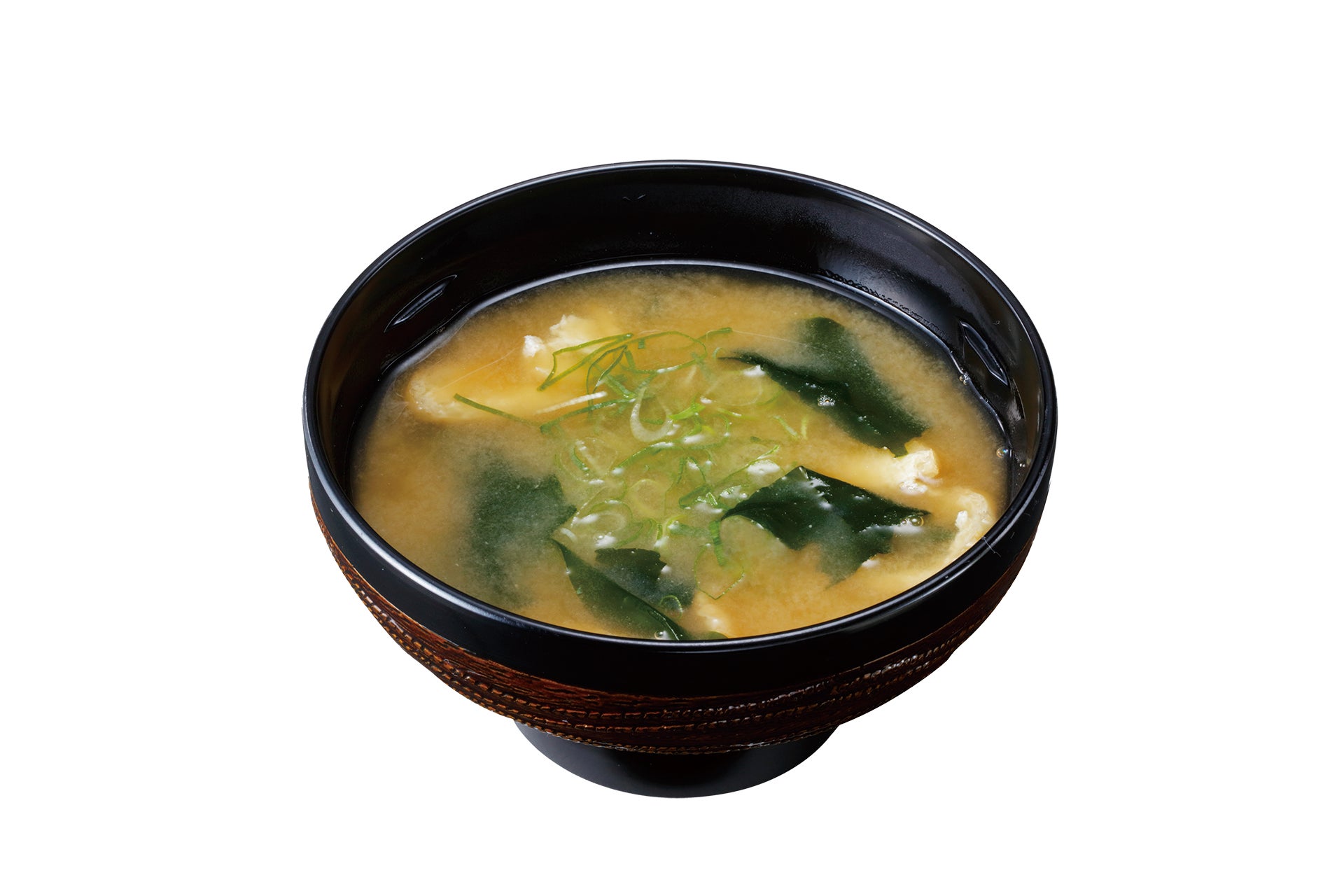 メインのハンバーグに合うように、コクのある信州こしみそを使用しています。みそ汁の具は週替わりです。