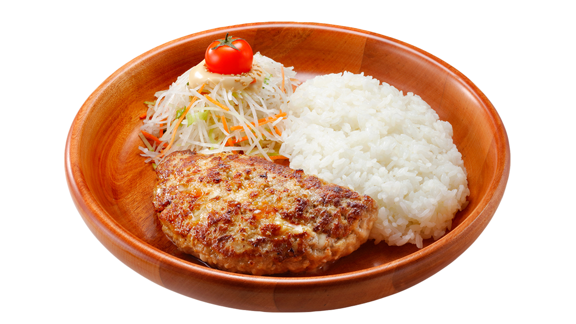 半熟に仕上げた目玉焼きと和風ベースのオリジナルハンバーグソースは抜群の組み合わせ!とろ~りたまごをたっぷりからめてお召し上がりください。