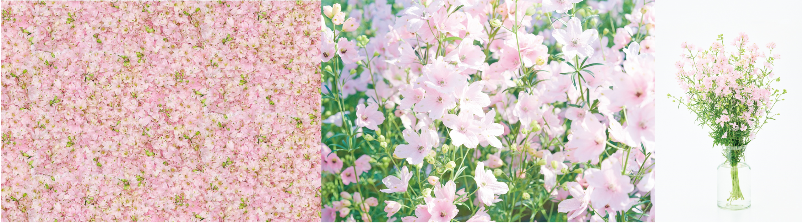 ・ 青色系が一般的なデルフィニウムをピンク色の花に品種改良