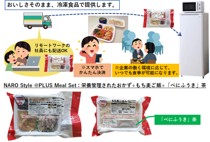 株式会社フローウィング(本社:兵庫県姫路市)は、SIP2(戦略的イノベーションプログラム)にて国立研究開発法人農業・食品産業技術総合研究機構(本部:茨城県つくば市以下「農研機構」という)と開発した健康維持の為の食事(NARO StyleⓇ PLUS)を社会実装として当社が持つ流通プラットホームを用い、株式会社島津製作所(本社:京都府京都市)に健康経営の一環として、いつでも利用可能な冷凍食品にして提供する。