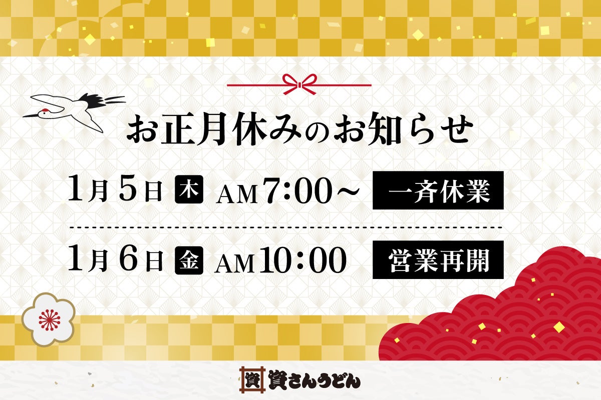 - 「資さんうどん」は、2023年1月5日(木)「お正月休み」をいただきます。