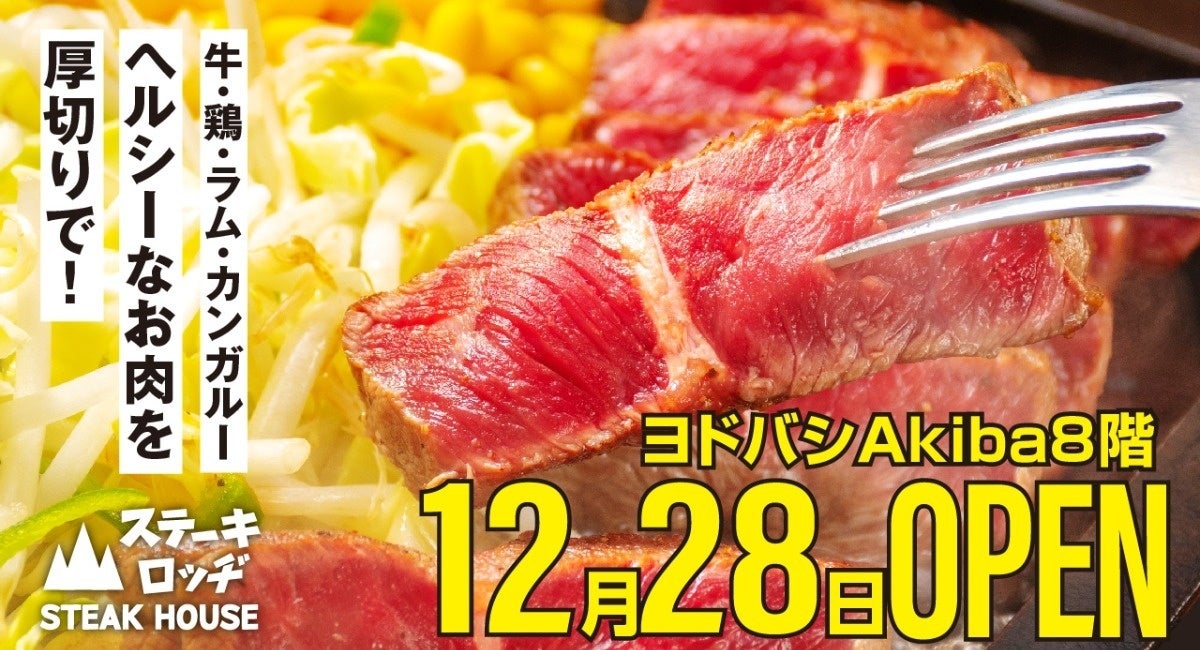 株式会社ファイブグループ(東京都武蔵野市:代表取締役社長 坂本憲史)の関連会社、「スパゲッティーのパンチョ」などを手掛ける株式会社B級グルメ研究所(本社:東京都武蔵野市、代表取締役社長:坂本 憲史)は、運営するステーキハウス『ステーキロッヂ』の新店舗『ステーキロッヂ ヨドバシAkiba店』を12月28日(水)オープンいたします。これを記念し、オープンから12月30日(金)までの期間中にご来店の方へ、特別キャンペーンをご用意。お会計時のくじ引きで当たりが出たら、飲食代金が無料に。当選確率10%という破格の設定で、多くの方のご来店をお待ちしております。