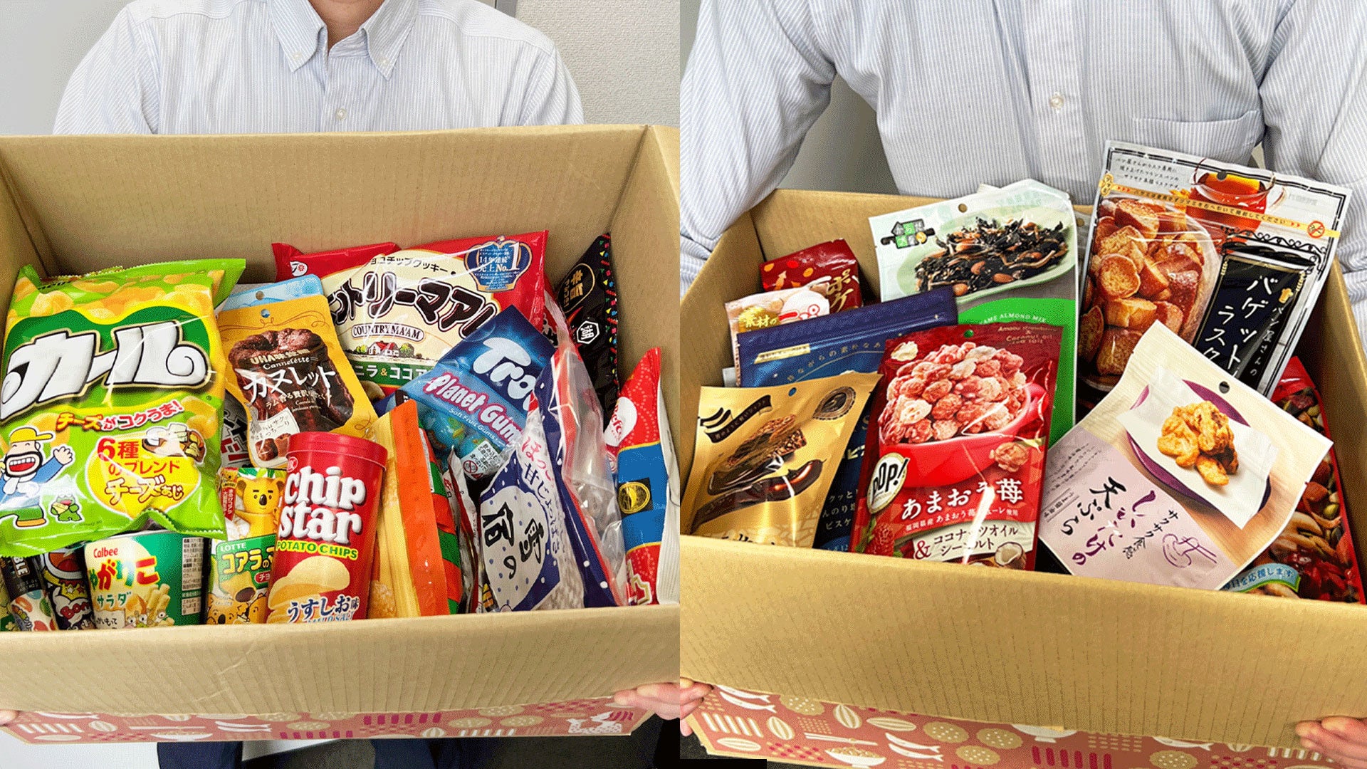 大きな段ボール2箱に、たっぷりのお菓子を詰め込みました。