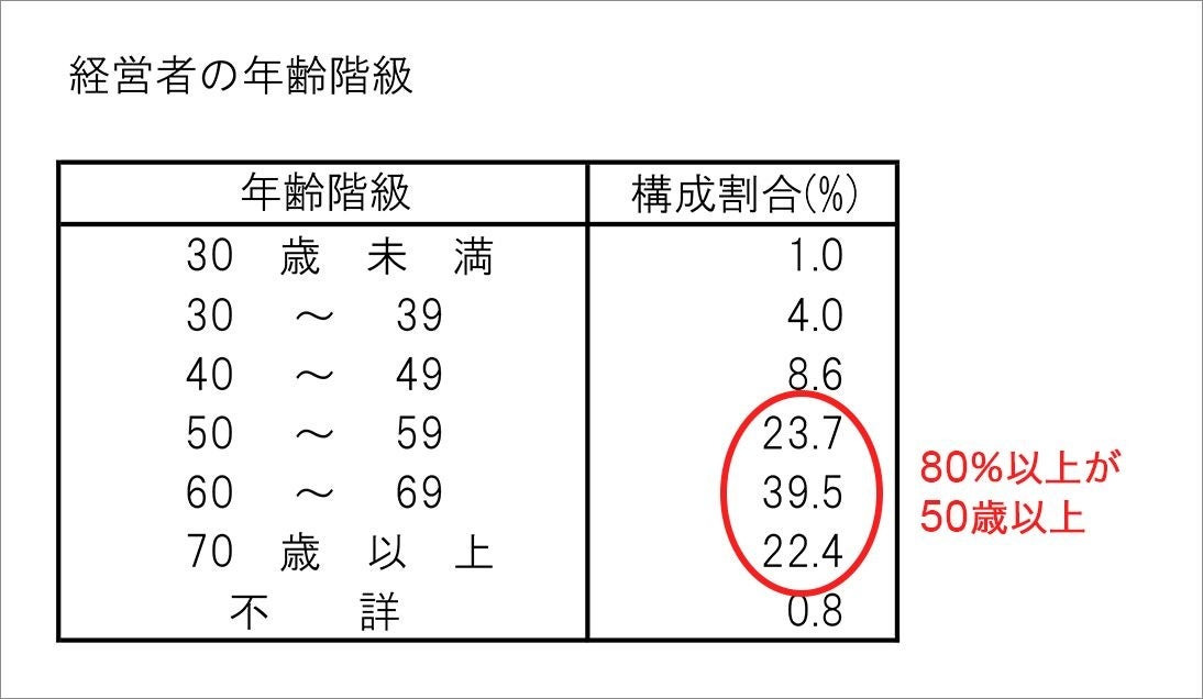 これには経営者の80%以上が50歳以上で、変化の速いネット化の波について行けないことが要因の一つと考えられる。(図2参照)