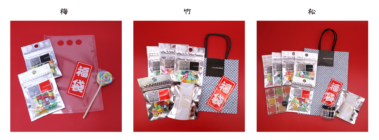 お正月ミックス、卯年ミックス、そしてお年賀用のキャンディやグミの他、今年も福袋3種を販売します。