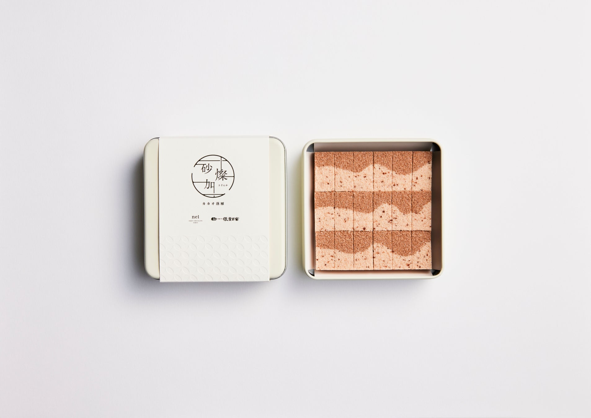 「砂燦加」は砂糖の「砂」、カカオ(加加阿)の「加」、そしてかがやく、きらめくの意味を持つ「燦」を組み合わせた名称です。和の落雁と西のチョコレートが、京都の老舗と東京の若手ショコラティエの技と感性によって重なり合い、伝統のもとで新たな価値を追求することで、未来を明るく照らすようなお菓子の提案を目指して考案しました。