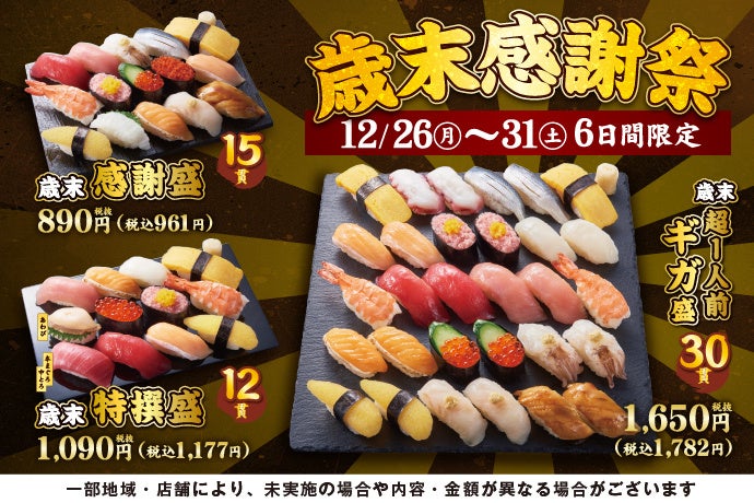持ち帰り寿し店の「小僧寿し」「茶月」を運営する株式会社小僧寿し(本社:東京都中央区 代表取締役社長 良本 宣之)は、持ち帰り寿し店「小僧寿し」にて、12月26日(月)~31日(土)の期間限定で、『歳末感謝祭』を開催致します。