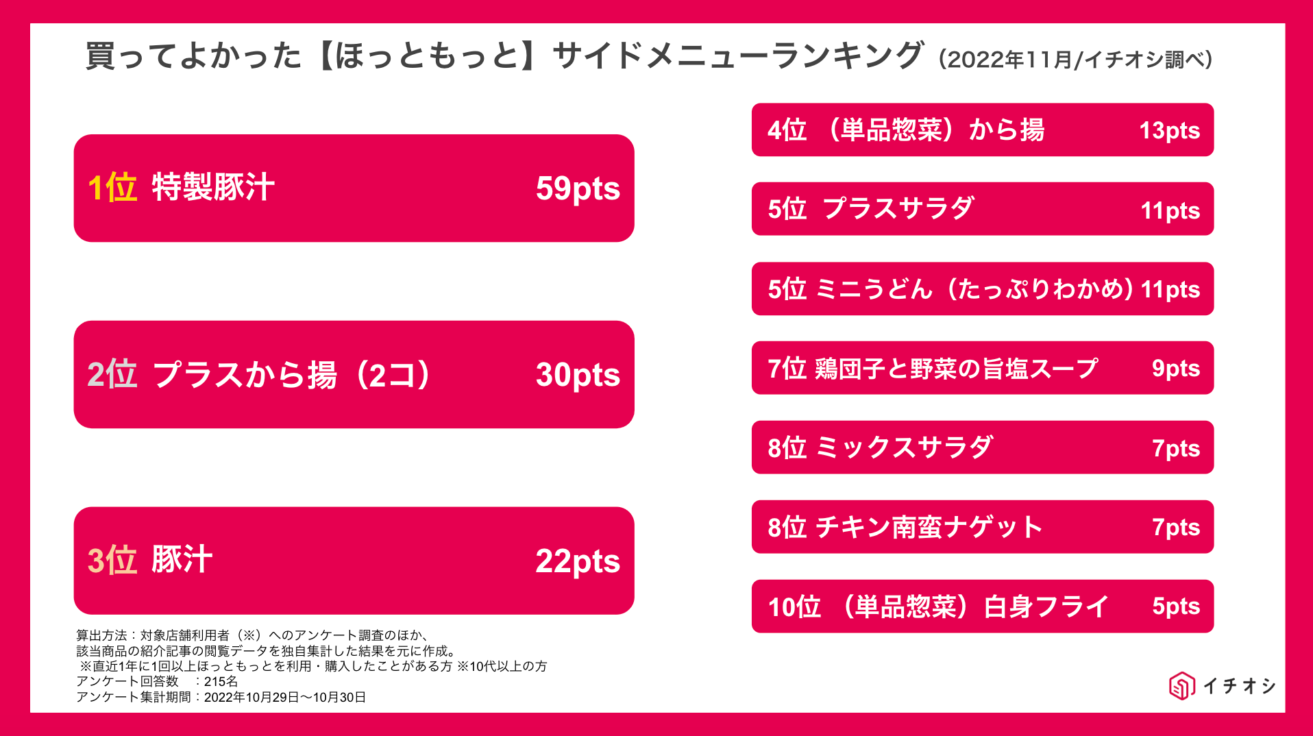 - イチオシが選ぶ!ほっともっとの「サイドメニュー」の人気商品ランキング