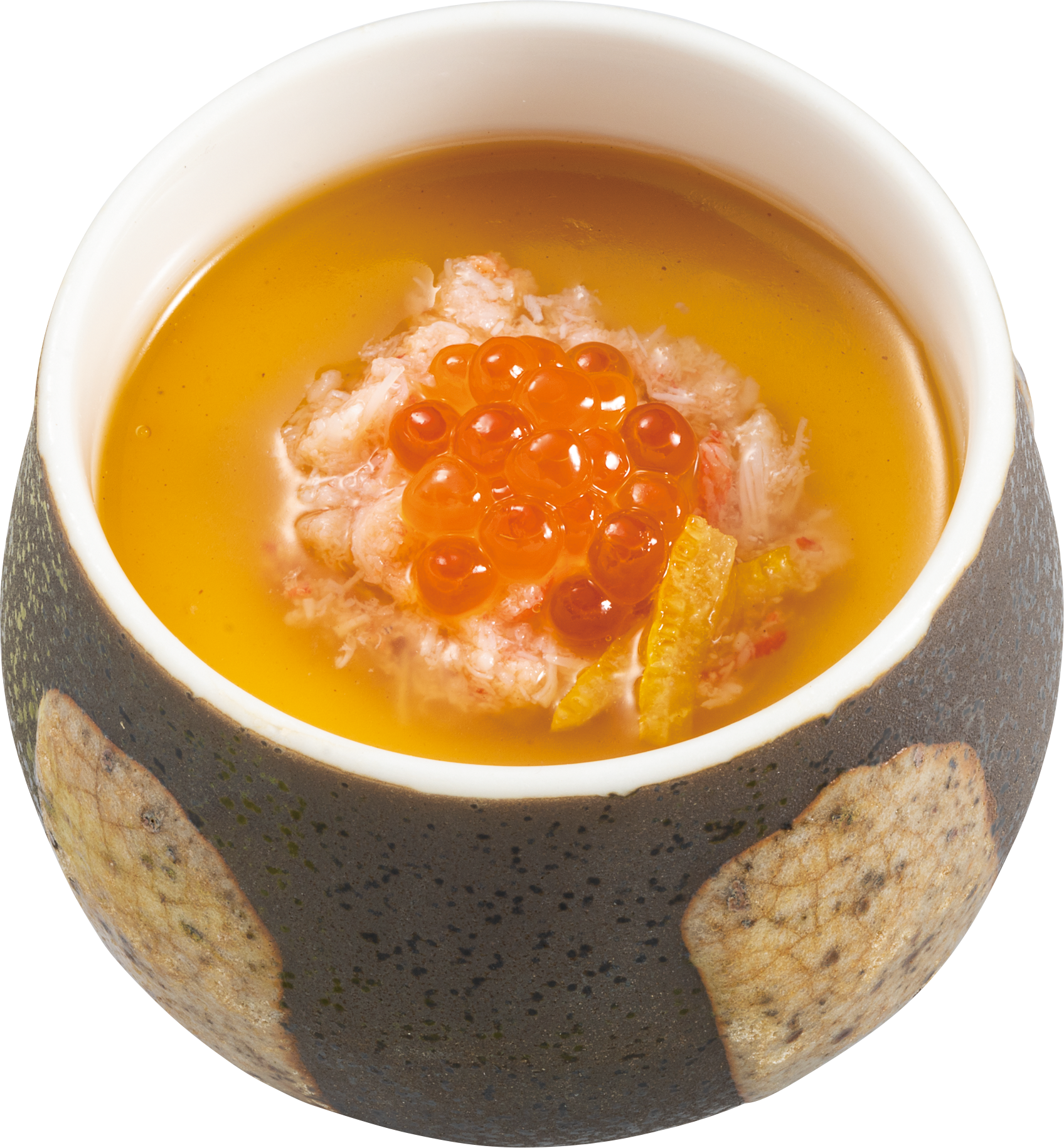 かっぱ寿司自慢の「かにみそ」も加えたコク深い味噌汁の『花咲蟹のてっぽう汁』や、お店で仕込むことによる滑らかな舌触りと、蟹といくらの旨みの相乗効果が楽しめる『蟹といくらの茶碗蒸し』まで、「蟹」の様々な味わいをご堪能いただけるラインナップをご用意いたしました。