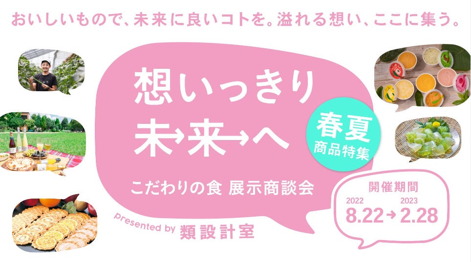 株式会社類設計室農園事業部(本社:大阪市淀川区、代表:阿部 紘)が、2022年12月1日(木)~2023年2月28日(火)にオンライン展示商談会「こだわりの食・春夏商品2023」を開催いたします。