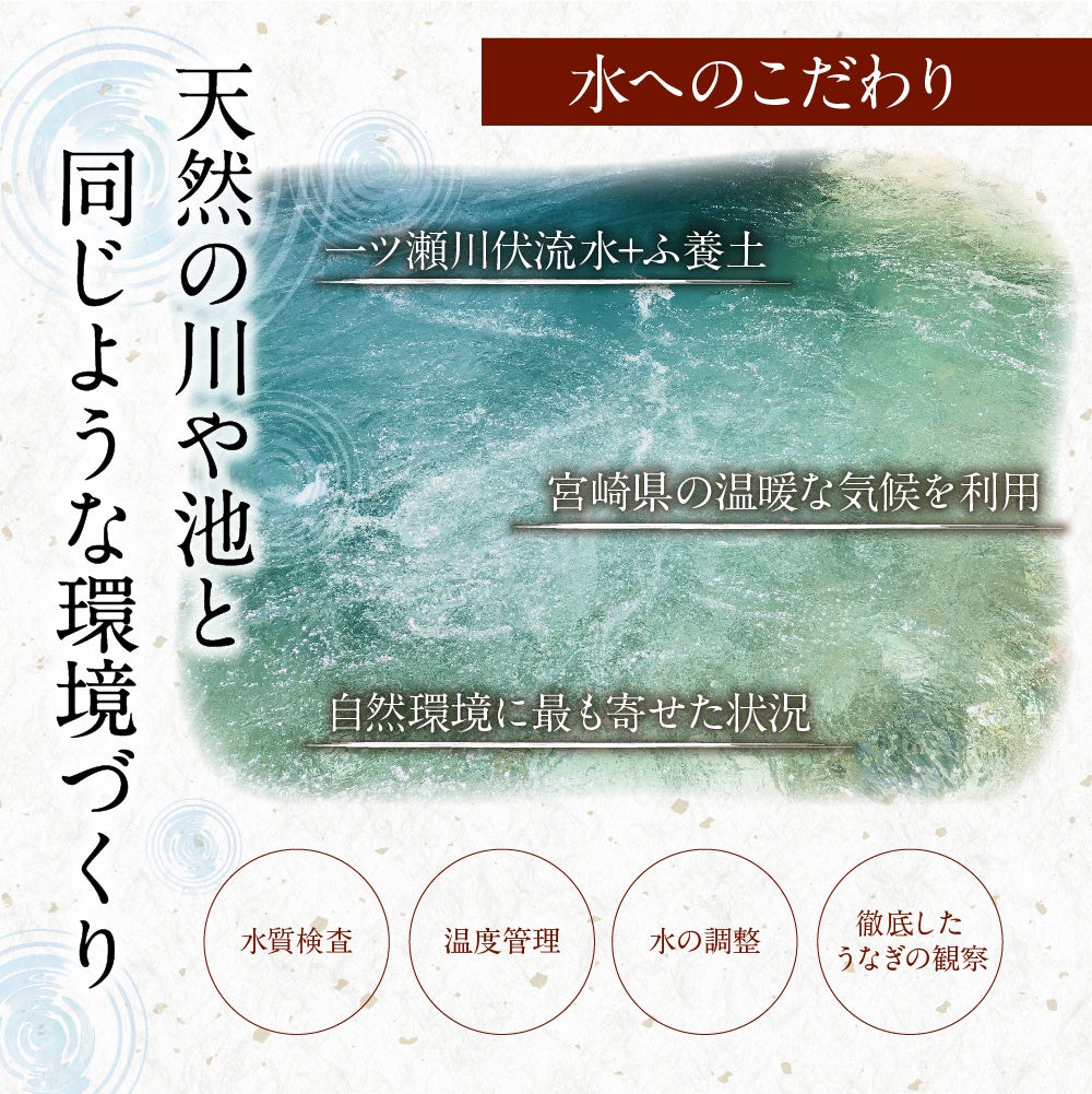 中でも新富町の町沿いに流れる一ツ瀬川は、天然うなぎが遡上してくるほどうなぎ好みの水質をしています。川の周辺には地下水が豊富に湧くため、その水を使い、自然に近い環境でうなぎを育てられる新富町は、宮崎県の中でも昔から養鰻の名地として知られています。