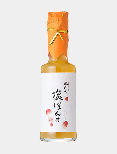 徳島産の実生の柚子と、丹後・琴引浜の海水塩で造った”塩ぽんず”です。18年かけて育った実生の柚子のフレッシュで力強い風味と、鳴き砂で知られる丹後・琴引浜の海水を煮詰めて作った“琴引の塩”の爽やかな美味しさが特徴です。焼き魚や湯豆腐、ぶりしゃぶなどにおすすめです。また、オリーブオイルなどと合わせて、簡単にマリネソースやドレッシングをおつくり頂けます。
