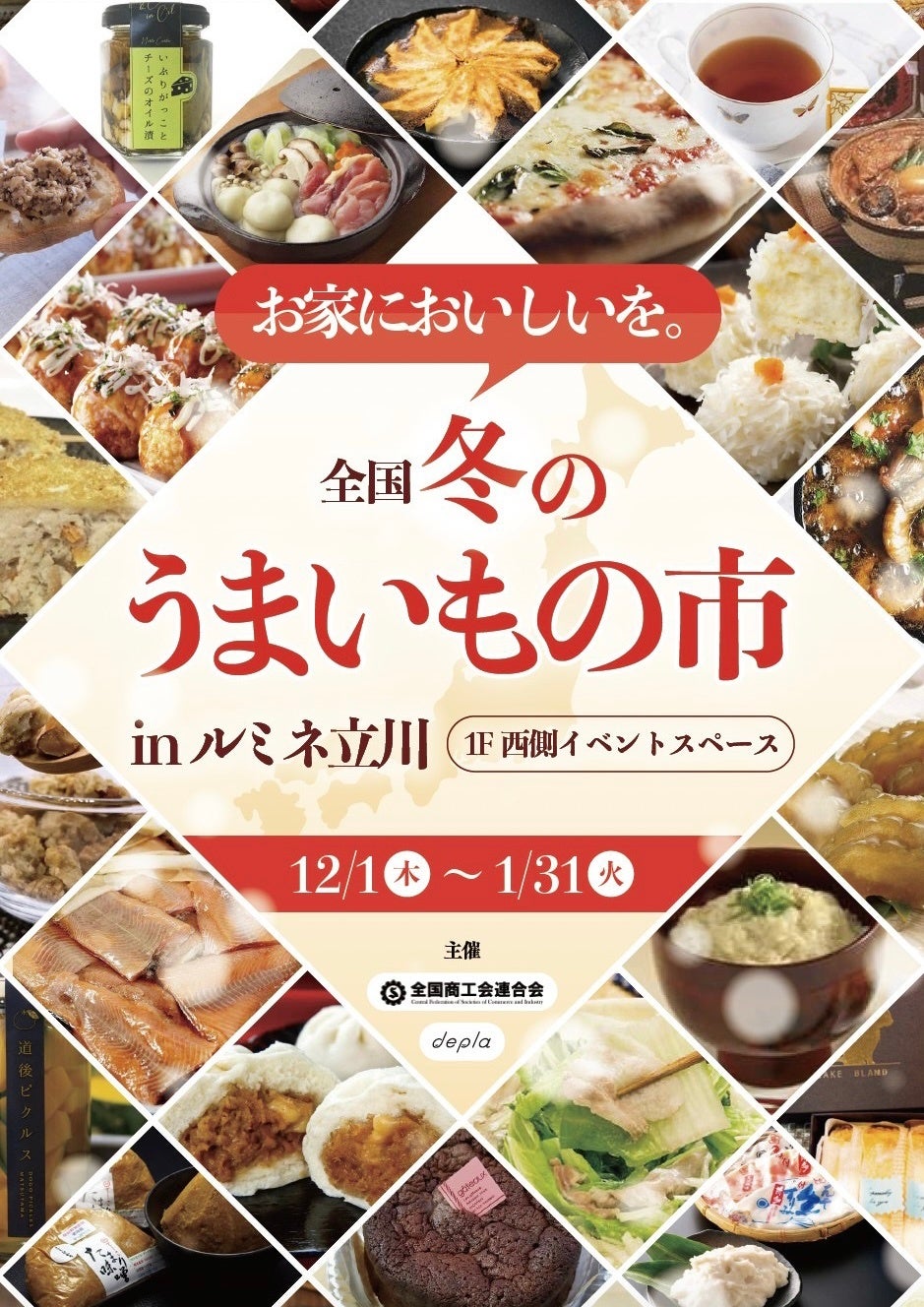 全国商工会連合会(所在地:東京都千代田区、会長:森 義久)主催で2023年1月31日(火)まで”全国冬のうまいもの市”をルミネ立川にて期間限定で開催しております。