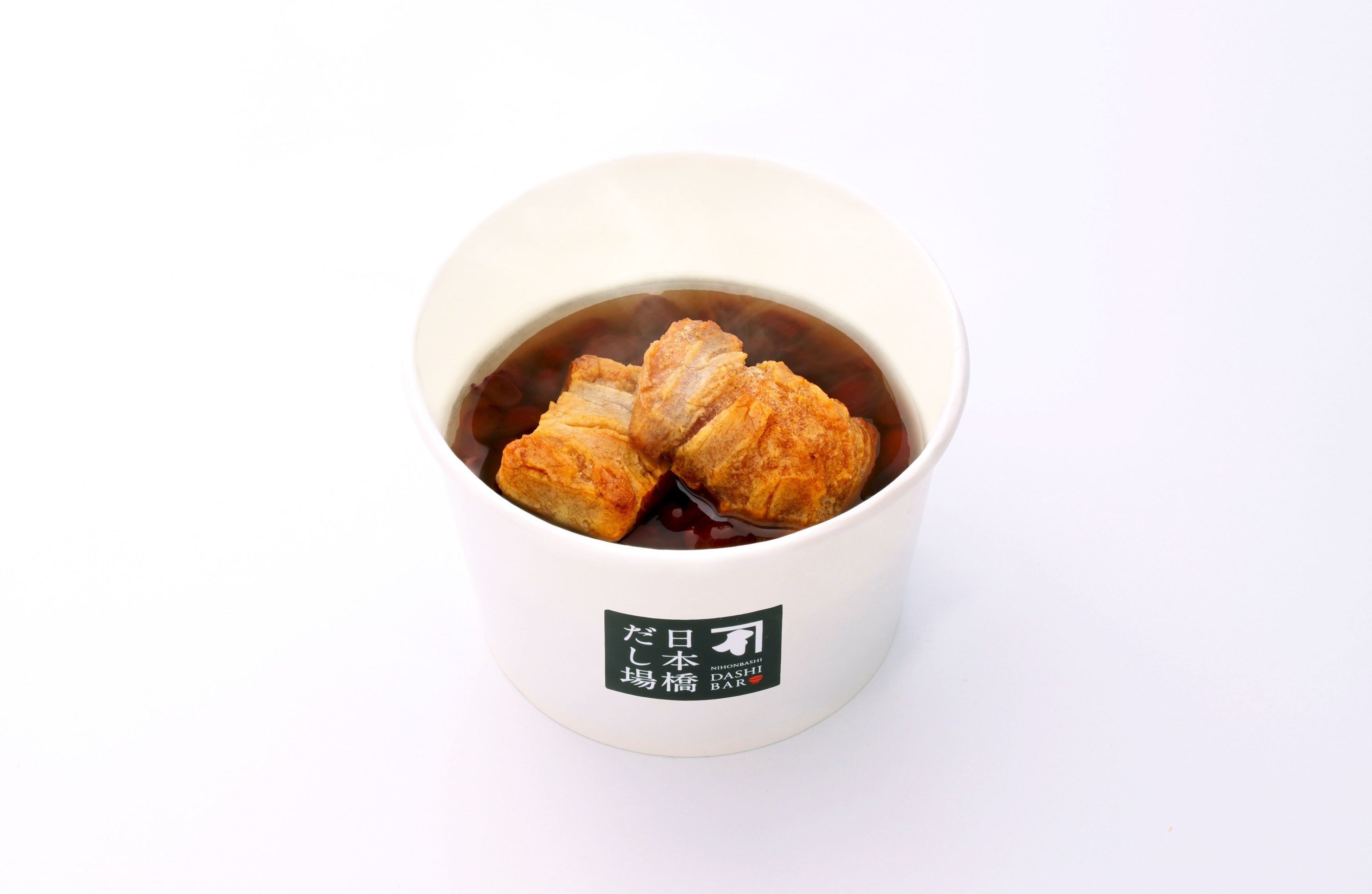 榮太樓のゆであずきにかつお節だしを加え、白だしのぬれおかきをトッピングしました。温かくて、甘塩っぱい味わいに仕上がっています。だしは、にんべんがこだわる本枯鰹節を使用しています。