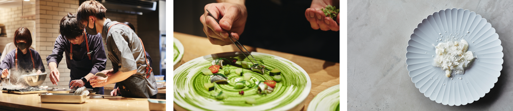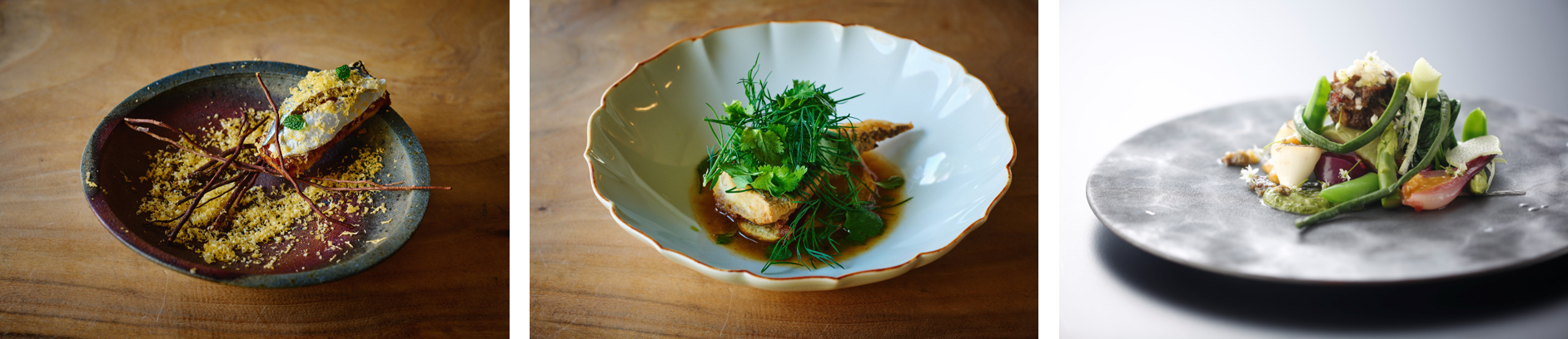 互いに、自然に抗うことなく、ありのままの食材を受け入れながら、地域に根づく文化や風土を一皿に表現するふたりのシェフ。九州と東北、文化圏の異なる二つの地域が交流することで生まれる、このとき限りのコラボレーションをお楽しみください。