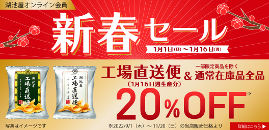 - 全品20%OFF 湖池屋オンラインショップ新春セール