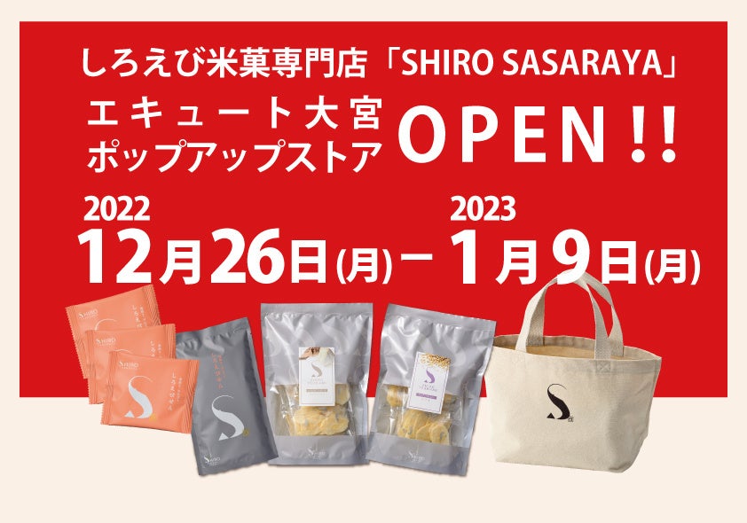 創業98年の老舗米菓メーカー日の出屋製菓産業株式会社(本社:富山県南砺市、代表取締役会長:川合 声一)より、新ブランド、しろえび米菓専門「SHIRO SASARAYA」が、JR大宮駅構内エキュート大宮 イベントスペースのシーズンコレクトにて2022年12月26日(月)~2023年1月9日(月)まで期間限定で出店いたします。